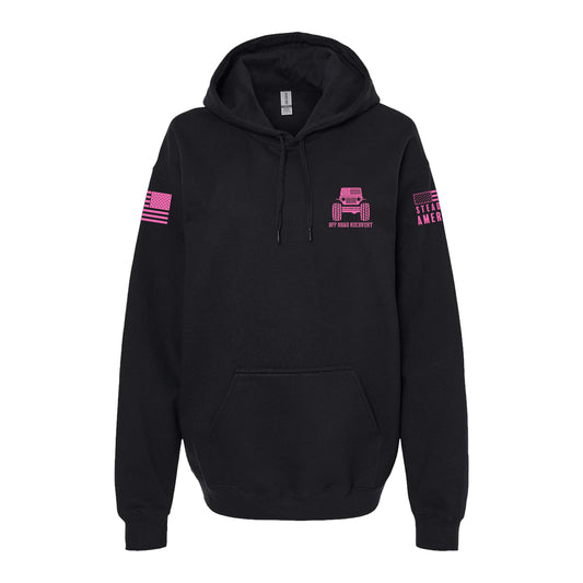 Regular price From $39.95 USDRegular priceUnit price / perSale price From $39.95 USDOff Road Recovery Flag, SoftStyle Hoodie, Black / Neon Pink
