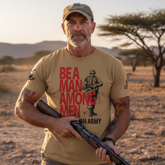 Regular price $24.95 USDRegular priceUnit price / perSale price $24.95 USDBe a Man Among Men – Rhodesian Army Historical T-Shirt