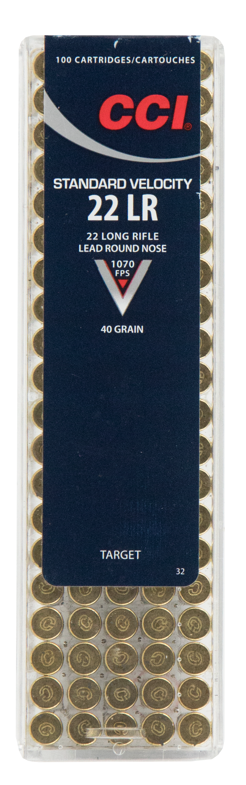 22 Long Rifle, CCI 0032 Standard Velocity, 40 gr. Lead Round Nose, 100 per Box
