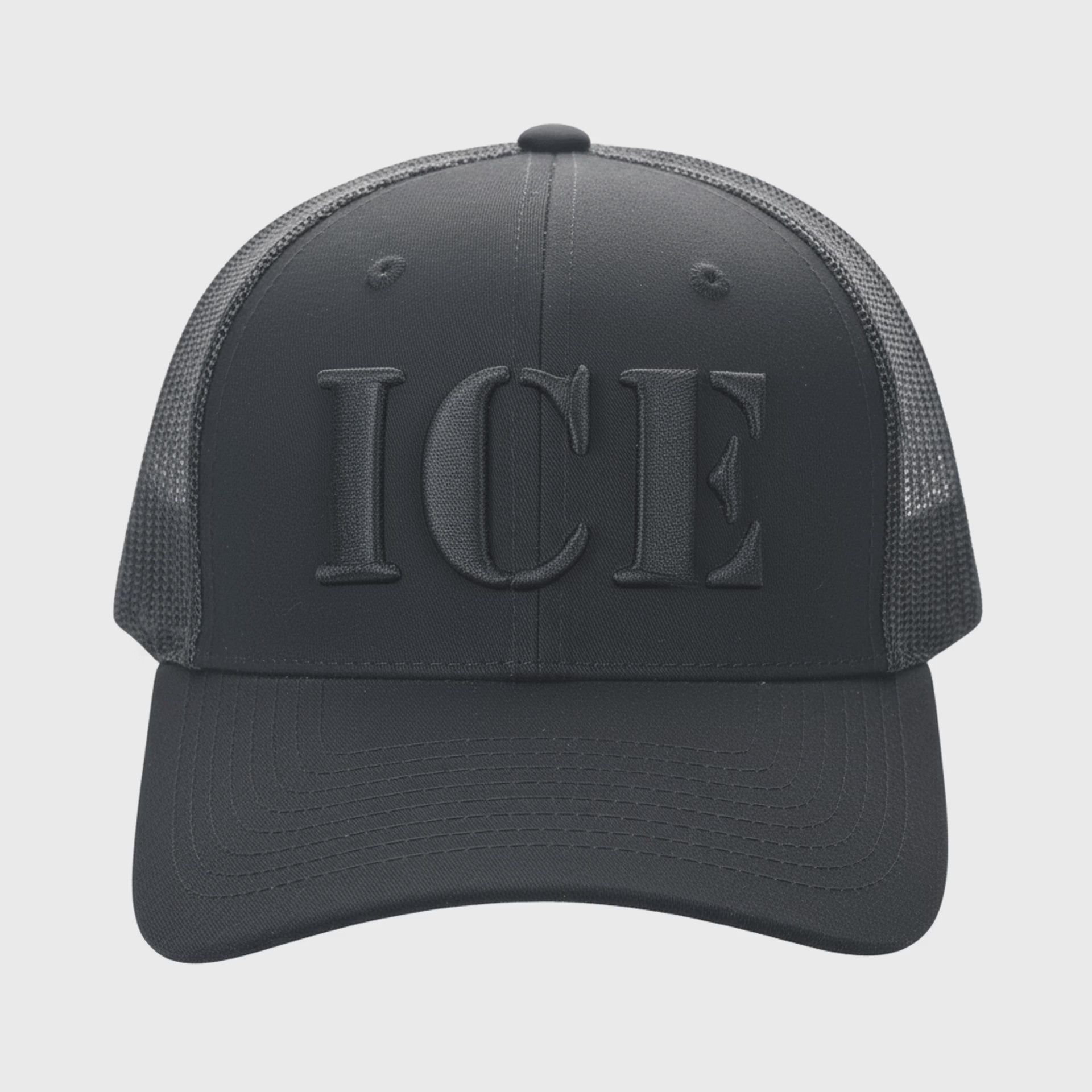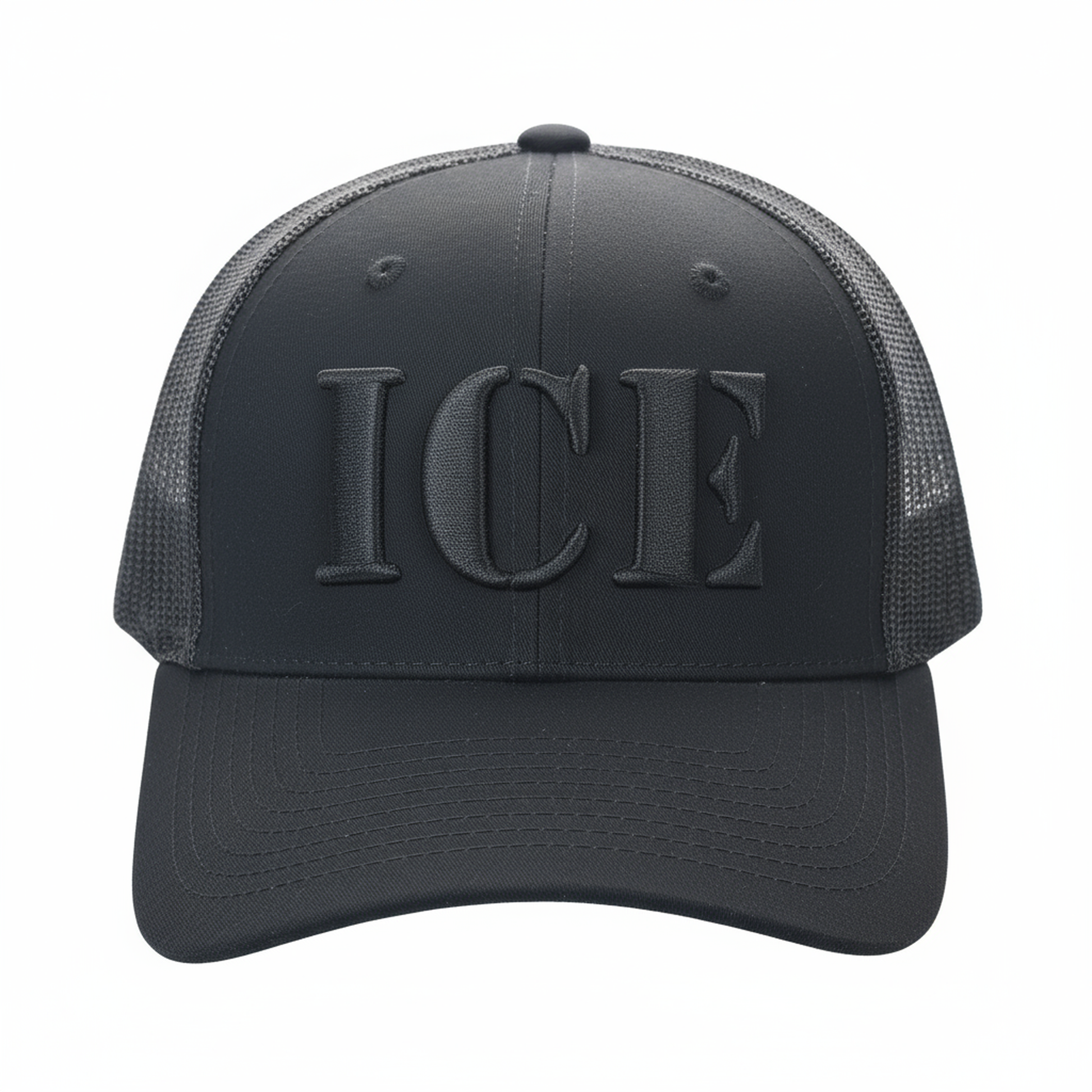 Add the ICE Blackout Trucker Cap to cart now and make a statement in stealth.