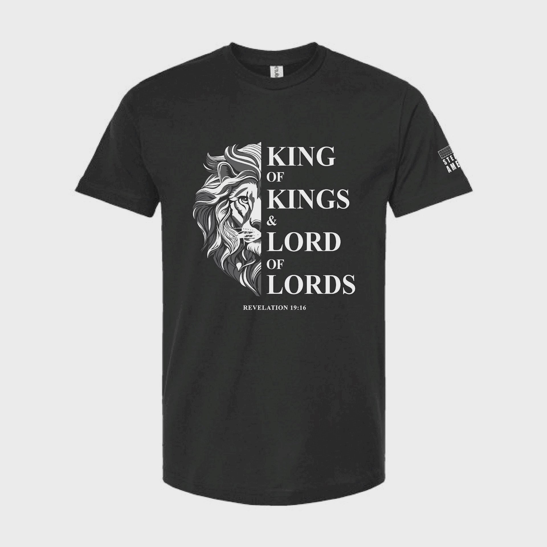 Crafted for comfort, style, and everyday wear, this shirt blends soft fabric with striking artwork inspired by Revelation 19:16. Whether you're at church, an event, or out in the world, this tee lets your faith speak boldly.