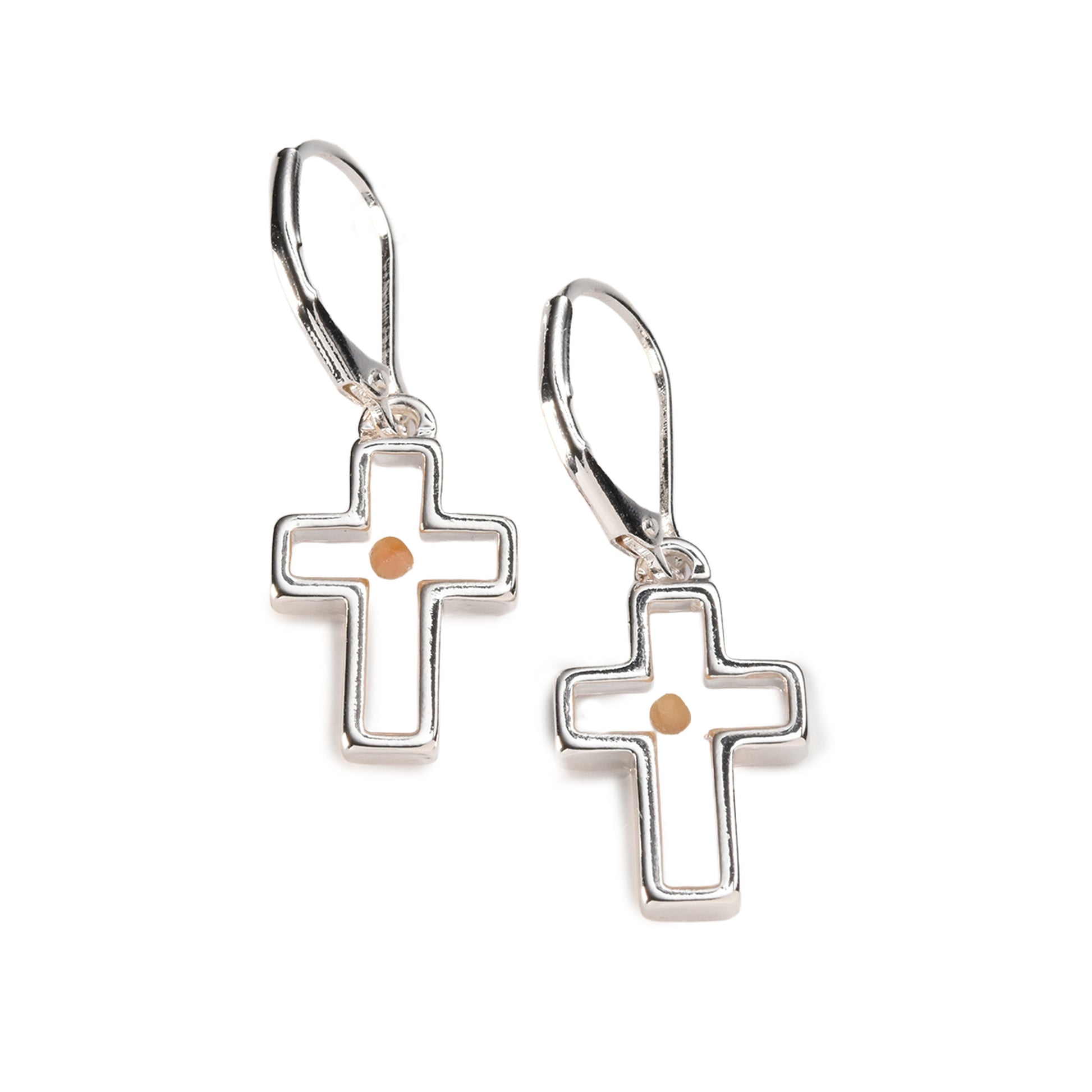 Mustard Seed Cross Earrings – Faith Jewelry Inspired by Matthew 17:20, Christian Gift for Women