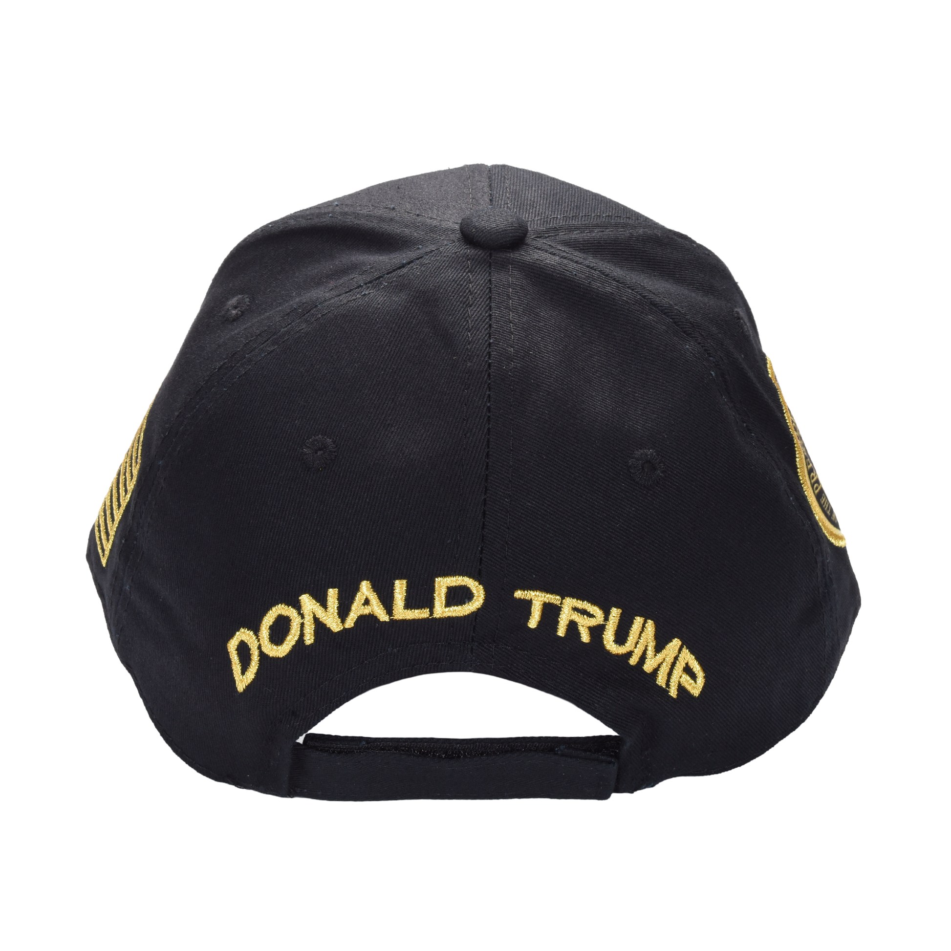 Trump 47 Black Cap with Gold Embroidery – Hook & Loop Adjustable Patriotic Hat